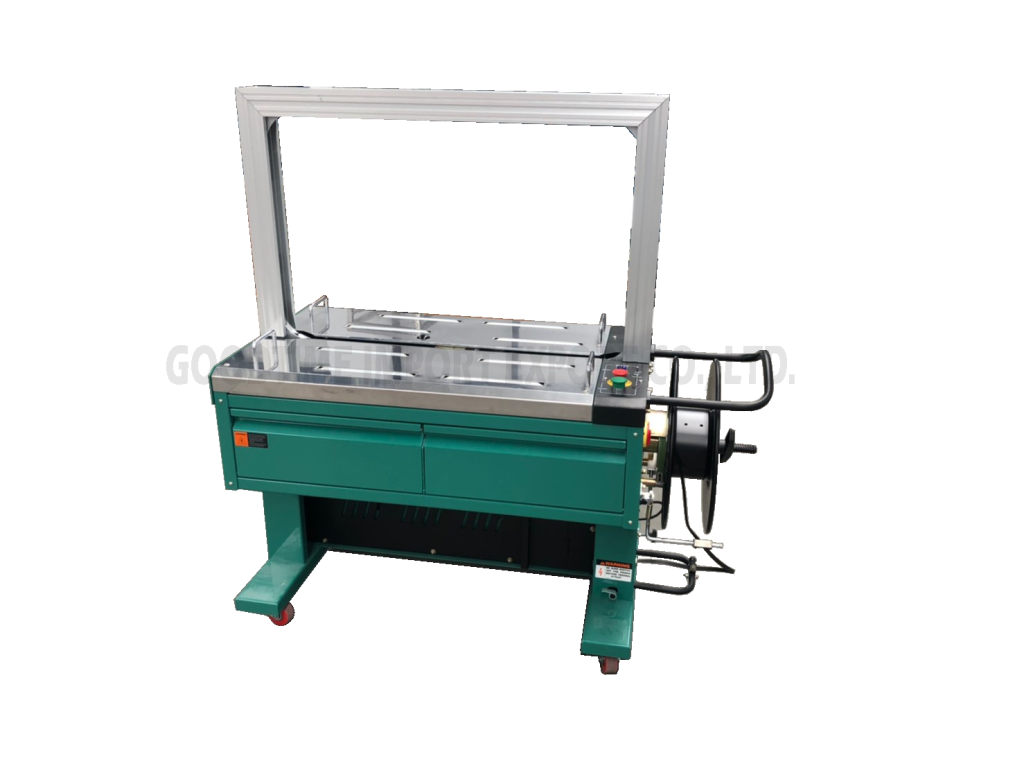 เครื่องรัดกล่อง Strapping Machine สามารถแพ็คกล่องได้อย่างอัตโนมัติต่อเนื่องโดยใช้เซ็นเซอร์เป็นตัวควบคุม เครื่องรัดกล่องใช้ระบบ PLC ควบคุมการทำงานทั้งระบบ ใบมีดสามารถถอดเปลี่ยนอะไหล่ได้เอง มีระบบการฟีด (feed) เชือกซ้ำเมื่อสายรัดฟีดไม่ถึง เพื่อช่วยให้การทำงานของเครื่องรัดกล่องเป็นไปอย่างต่อเนื่อง โครงกรอบอลูมิเนียม ฟีดเชือกสามารถสั่งทำให้กว้างและสูงตามขนาดของสินค้าได้ เครื่องรัดกล่องเหมาะสำหรับไลน์ผลิตอัตโนมัติ อุตสาหกรรมที่ต้องการแพ็คสินค้าให้แน่นหนา ป้องกันการเสียหาย เช่น ไลน์กระป๋อง, ไลน์เครื่องใช้ไฟฟ้า, หรือกล่องผลิตภัณฑ์ต่างๆ